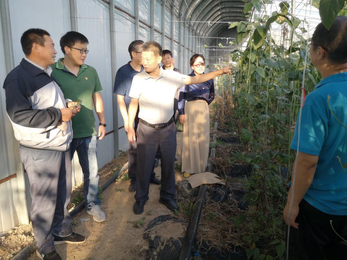 在刘闵城村蔬菜大棚查看豆角生长情况