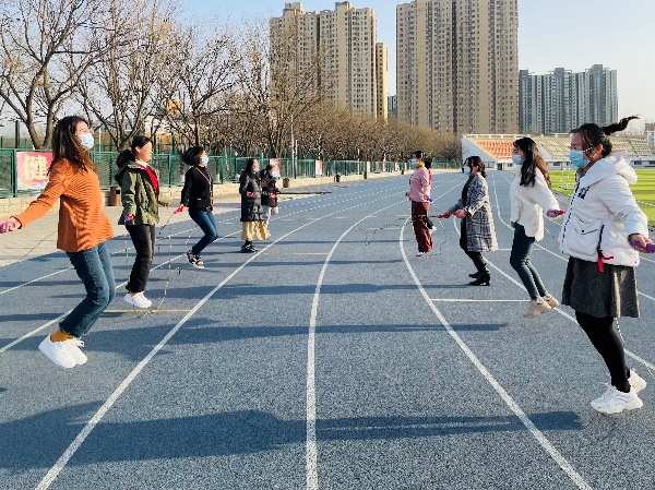 下午13点30,全体女教师在分工会主席杨聪聪的带领下,来到南操场,在简单的启动仪式结束后,女教师们沿着跑道开始健步走。走出户外,迈开脚步,谈笑风生,心情舒畅。呼吸着新鲜空气,行走在充满生机和活力的跑道上,缓解了压力,舒缓了心情,一路上,女教师们有说有笑,在大自然中感受着节日的愉悦。健步走结束后,老师们进行了跳绳、踢毽子比赛。活动现场精彩纷呈、妙趣横生,女教职工们热情高涨,欢笑声此起彼伏。