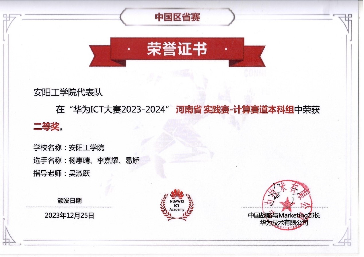 第八届华为ICT大赛于2023年10月份启动,是全国普通高校老员工56个竞赛排行榜项目名单之一,中国高等教育学会认可的含金量高、参赛价值大的国家级竞赛项目。此次大赛实践赛包含四条赛道,分别是网络赛道、云赛道、计算赛道和昇腾AI赛道。在太阳成集团tyc151精心组织下,经过近三个月的赛程,大赛经过比拼,公司学子再获佳绩,二等奖一项、三等奖三项(计算赛道两项、网络赛道一项),其中昇腾AI是此次大赛新增赛道,全国共有30组入围决赛,公司成功入围该赛道总决赛。