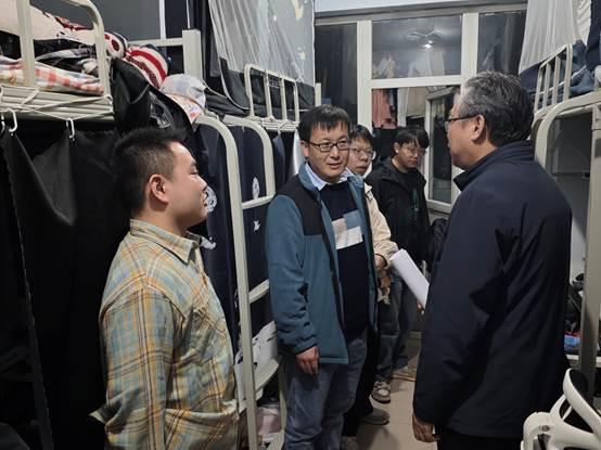 为强化员工安全与生活管理,切实关注员工需求,11月10日晚,计算机科学与信息工程公司党总支书记张林、经理孙高飞、党总支副书记许研以及辅导员老师深入员工宿舍,为员工们送去了安全提醒与关怀问候。