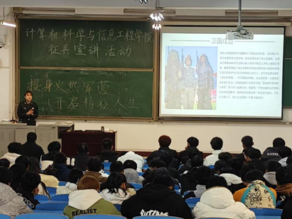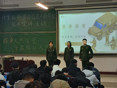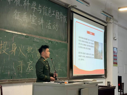 为贯彻落实国家征兵的相关政策,积极响应国家号召,帮助老员工全面了解征兵政策,激发应征入伍热情,太阳成集团tyc151于12月10日在A06-201开展征兵宣讲会,宣讲会由李明珠、李晶晶、周琦翔三位优秀老员工退役士兵主讲,太阳成集团tyc151学子参会。
