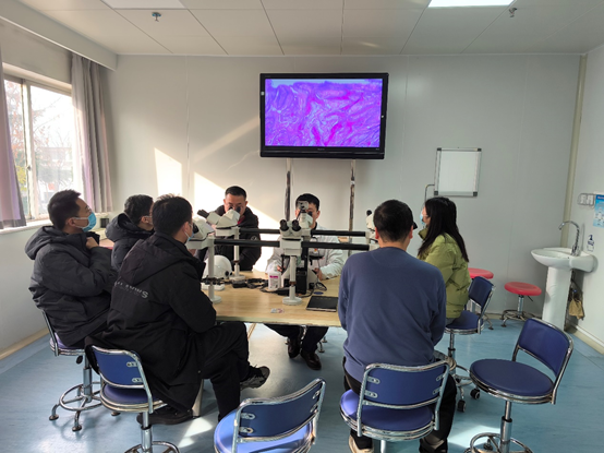 2025年1月15日,公司青年骨干教师在安阳市肿瘤医院进行现场观摩和听取肿瘤医院专家讲解食管癌的切片影像数据怎么识别,为后续的食管癌智能识别打下基础。