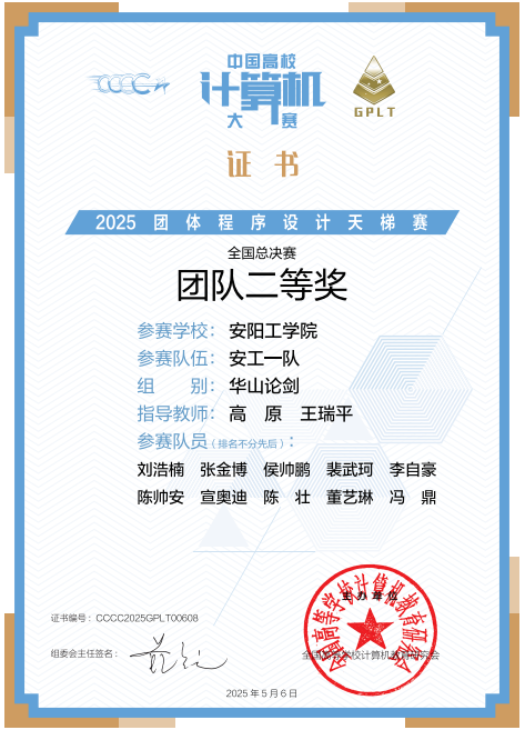 4月19日,第十届"团体程序设计天梯赛"全国总决赛圆满落幕。我公司员工组成的代表队凭借扎实的编程功底与团队协作精神,最终斩获全国总决赛团队二等奖1项、河南省团队一等奖1项、河南省团队三等奖2项。展现了公司在计算机程序设计教学与实践中的卓越成果。
