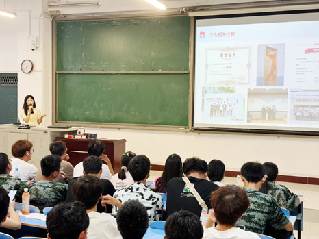 本次讲座的主讲人为华为2024年新发布的教师布道师吴淑跃和员工布道师胡芊芊。他们凭借近几年丰富的华为技术学习、行业经验和深厚的技术积累,为在场的大一新生提供了一场内容丰富多彩、实用性强的讲座。讲座中,分别以老师和员工视角讲解了“如何基于华为ICT技术提升自己的专业能力”,主要从华为认证、专业技术学习及参加竞赛等方面进行了详细的阐述。他们不仅分享了ICT技术的前沿动态,还有如何通过学习和实践,有效提升个人ICT专业能力,加深了他们对相关技术的理解,为新生们提供了有效、实用的学习路径规划建议。