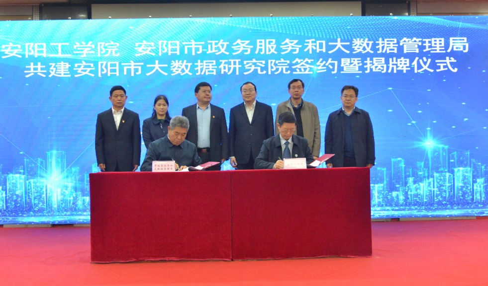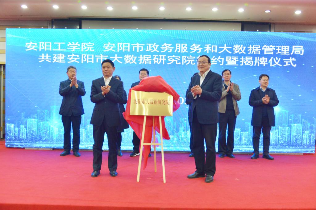 最后,景国勋、王福生代表双方签署共建安阳市大数据研究院协议,任中普、王金波共同为“安阳市大数据研究院”揭牌。