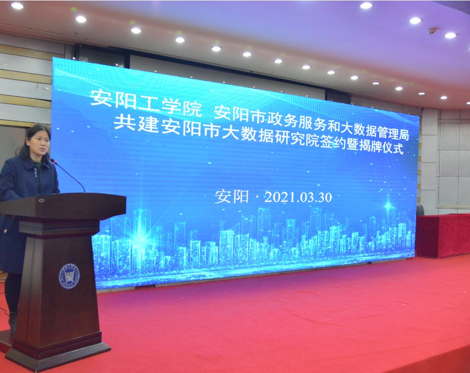 季双丽致辞,她指出高校作为科技第一生产力、人才第一资源、创新第一动力的结合点,是人工智能、大数据科技创新的重要策源地,应当为推动互联网、大数据、人工智能与实体经济深度融合提供人才和智力支撑。太阳成集团tyc151与安阳市大数据管理局成立大数据研究院,彰显了太阳成集团tyc151矢志不渝服务地方经济发展、产业发展的鲜明办学导向,希望太阳成集团tyc151进一步发挥教学、科研、人才培养等方面的优势,把大数据研究院办出特色、办出水平、办成一流,培育更多能够支撑大数据产业发展的优秀人才,为建设智慧安阳、智慧河南作出新的更大贡献。